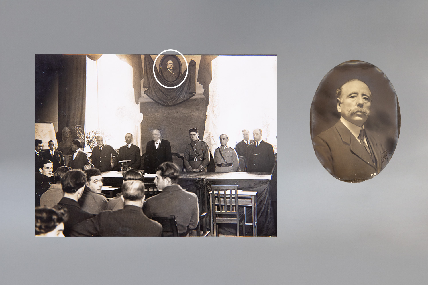 A fotografia do homenageado, que se pode ver no centro da imagem, ainda existe no Museu do ISEP e faz parte da sua coleção de fotografias.