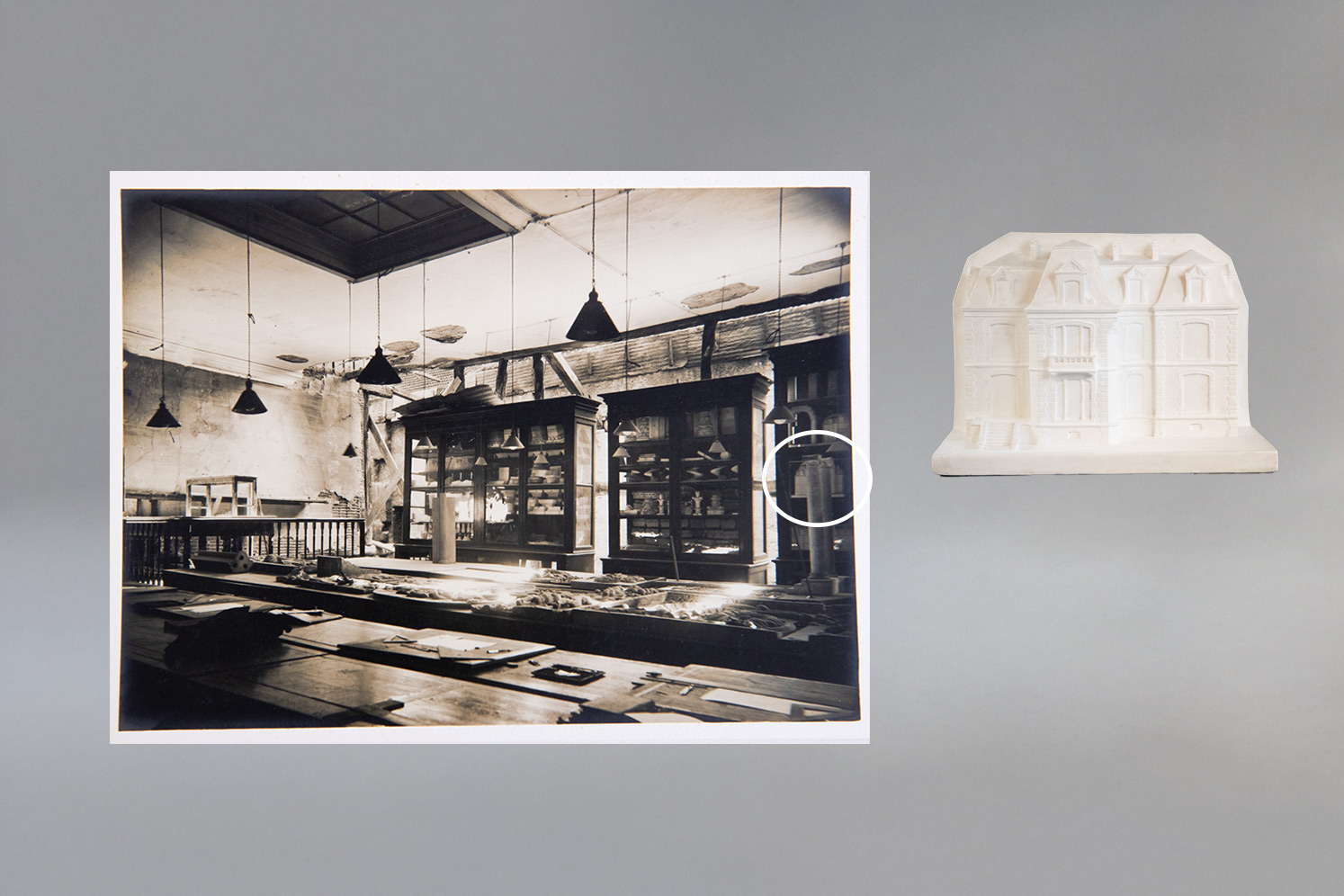 Da coleção destacamos um modelo de palacete e os seus quatro alçados utilizados no ensino do desenho técnico, especificamente na área do desenho arquitetónico/edifícios.