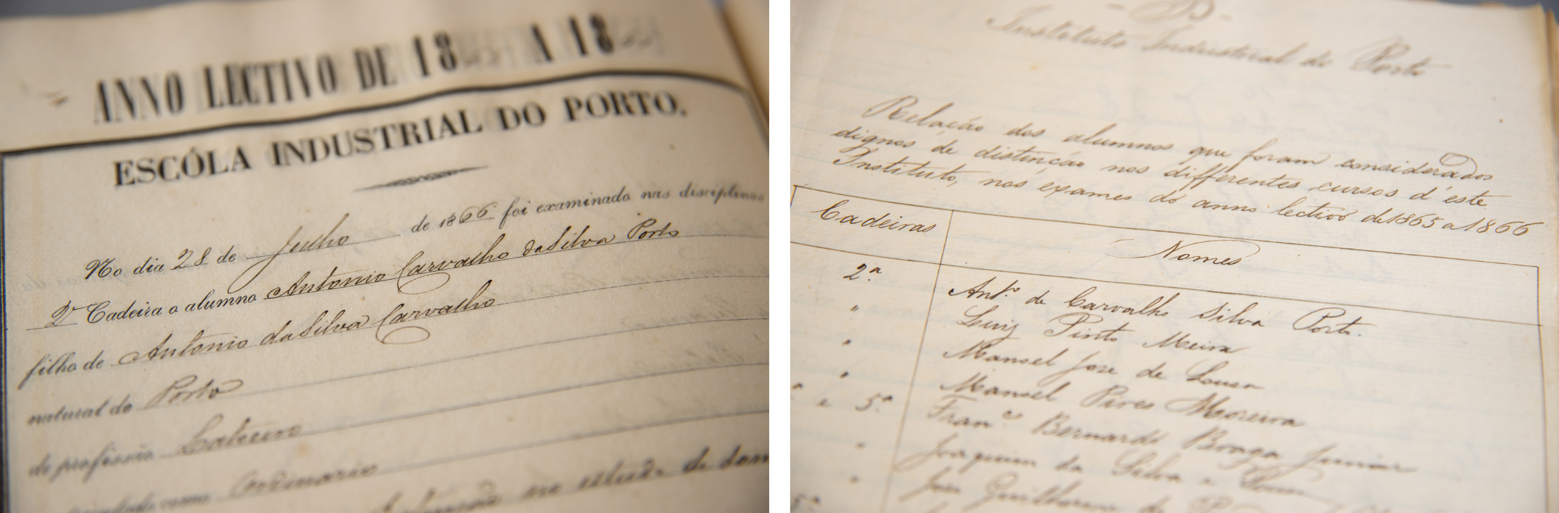 A 11 de outubro de 1865 matriculou-se, como aluno ordinário, no Instituto Industrial do Porto na 2ª cadeira - Desenho Linear e de Ornatos Industriais, com apenas 12 anos, tendo sido aprovado com distinção.
